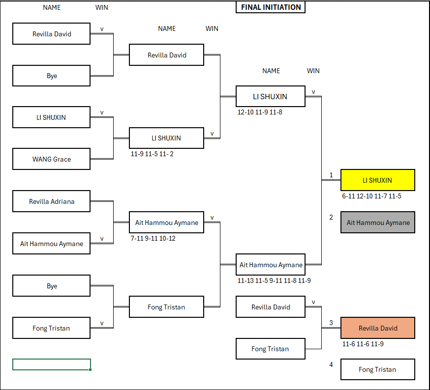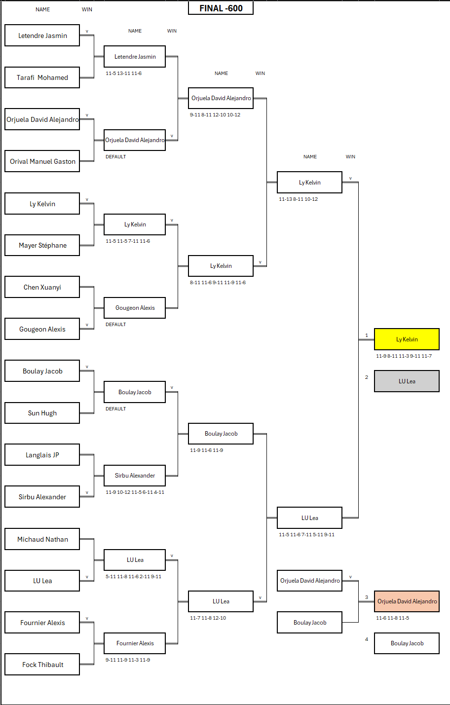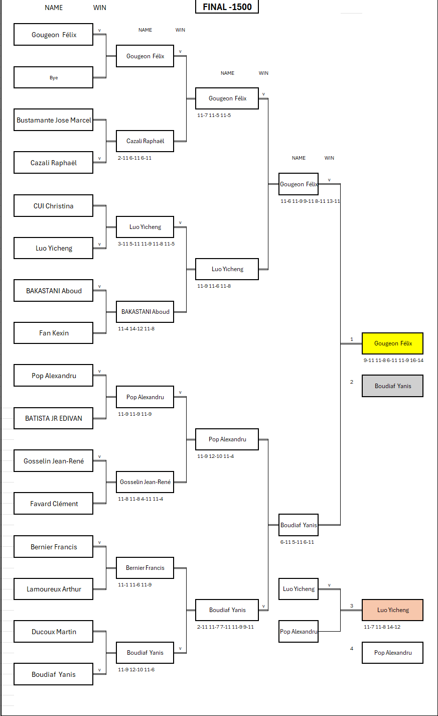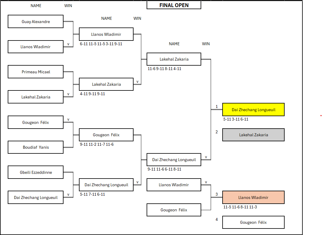 Félicitations à Dai Zhechang (CTTL), Zakaria Lakehal (Prestige) et Wladimir Llanos (LYTTA)! Une mention spéciale pour Félix Gougeon (CTTL) qui obtient la bourse de la 4e place.