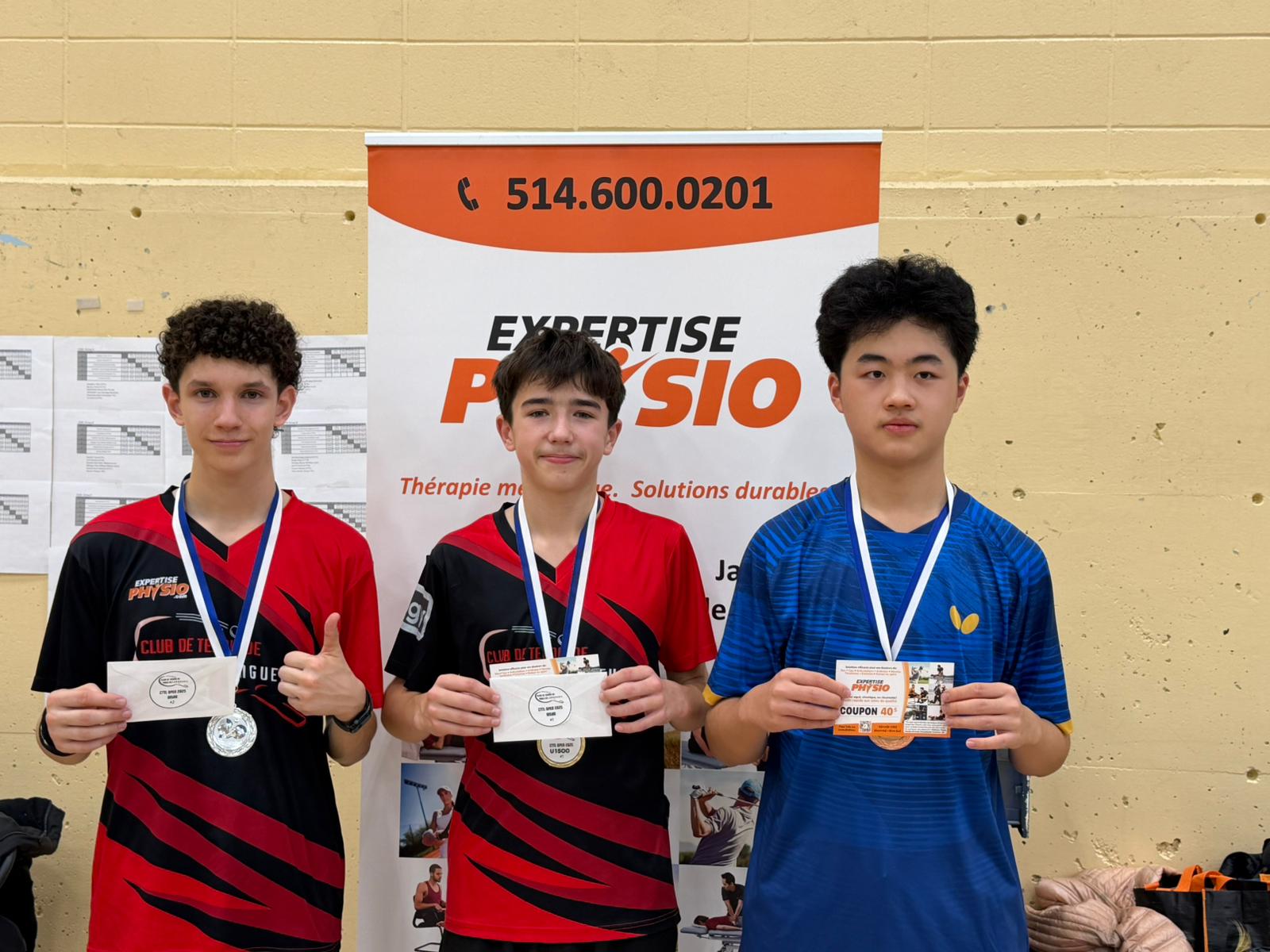 Félicitation à Félix Gougeon (CTTL), Yanis Boudiaf (CTTL) et Yicheng Luo (Prestige). Un beau duo CTTL sur le podium 🥳